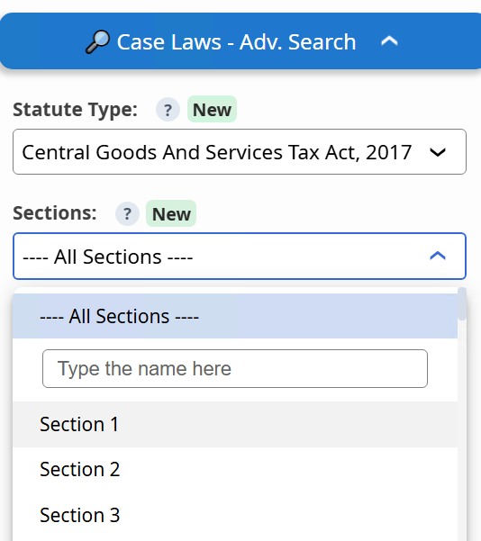 1. Search Case laws by Section / Act / Rule β now available beyond Income Tax. GST and Other Laws Available